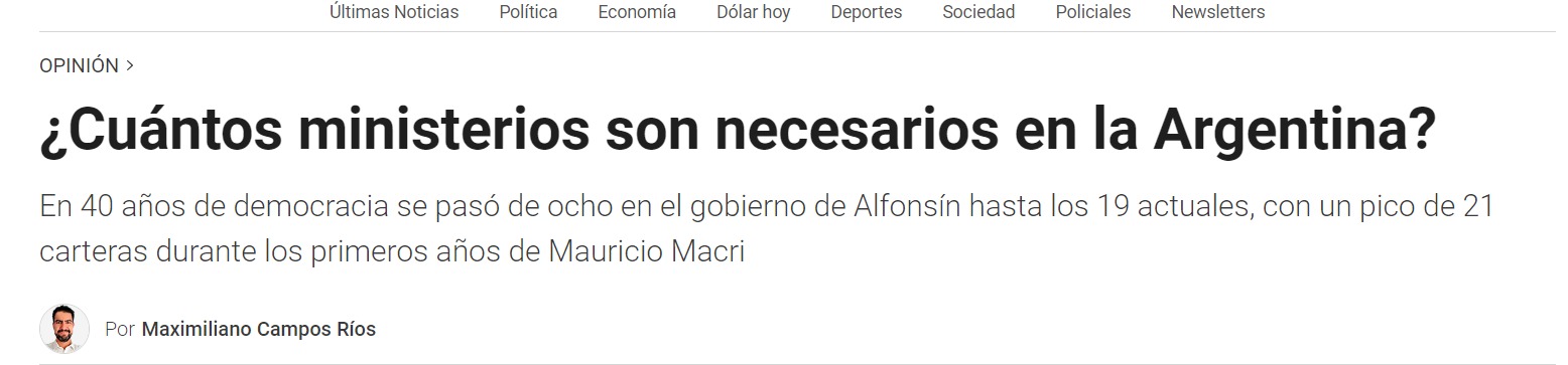 La “inflación ministerial” que ha vivido la Argentina desde que recuperamos la democracia hace 40 años, pasando de 8 ministerios en el gobierno de Alfonsín hasta los 19 actuales, con un pico de 21 carteras durante los primeros años de Mauricio Macri y luego retomado con Alberto Fernández, nos lleva a preguntarnos cuántos ministerios son necesarios para gobernar el país y si es verdad el dicho que reza que “menos es más”.