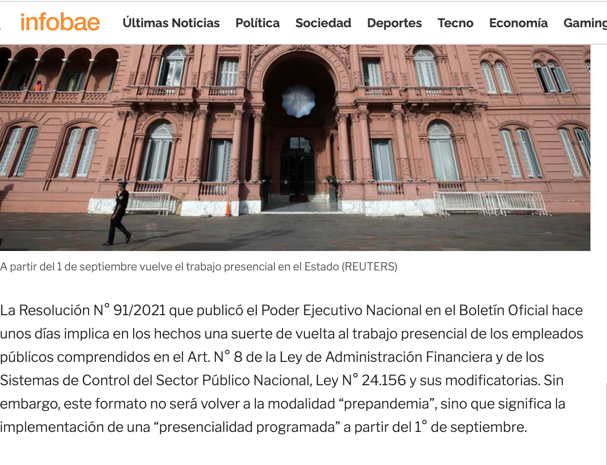 La Resolución N° 91/2021 que publicó el Poder Ejecutivo Nacional en el Boletín Oficial hace unos días implica en los hechos una suerte de vuelta al trabajo presencial de los empleados públicos comprendidos en el Art. N° 8 de la Ley de Administración Financiera y de los Sistemas de Control del Sector Público Nacional, Ley N° 24.156 y sus modificatorias. Sin embargo, este formato no será volver a la modalidad “prepandemia”, sino que significa la implementación de una “presencialidad programada” a partir del 1° de septiembre.