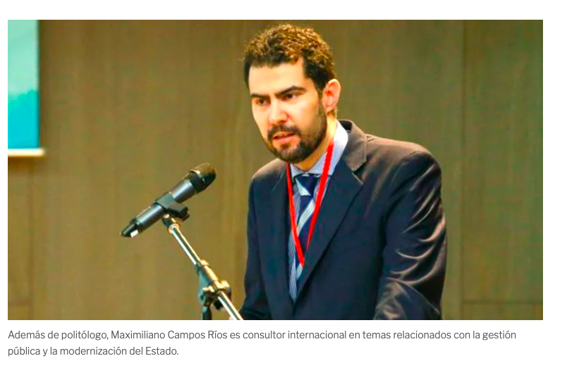 Además de politólogo, Maximiliano Campos Ríos es consultor internacional en temas relacionados con la gestión pública y la modernización del Estado.Esto genera un doble proceso: el avance tecnológico se masifica a niveles que superan los límites estatales y rebalsa su capacidad de acción, mientras que los niveles con mayor grado de conocimiento o cercanía con los problemas no tienen el poder de decisión suficiente para implementar las soluciones necesarias. Incluso si repasamos la idea de Everett M. Rogers en Diffusion of innovations (1963), donde busca explicar la forma en que las innovaciones son adoptadas por una población o por las instituciones, vemos que la adopción de una innovación —una nueva idea, un cambio de proceso o una tecnología— es siempre difícil, aún si las innovaciones muestran ventajas inmediatas y visibles. Cualquier innovación requiere de un largo periodo de tiempo para ganar aceptación general para su adopción.