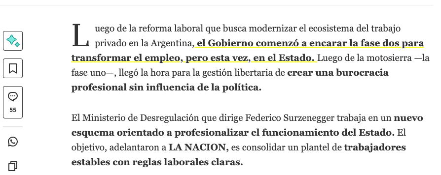 Luego de la reforma laboral que busca modernizar el ecosistema del trabajo privado en la Argentina, el Gobierno comenzó a encarar la fase dos para transformar el empleo, pero esta vez, en el Estado. Luego de la motosierra —la fase uno—, llegó la hora para la gestión libertaria de crear una burocracia profesional sin influencia de la política.