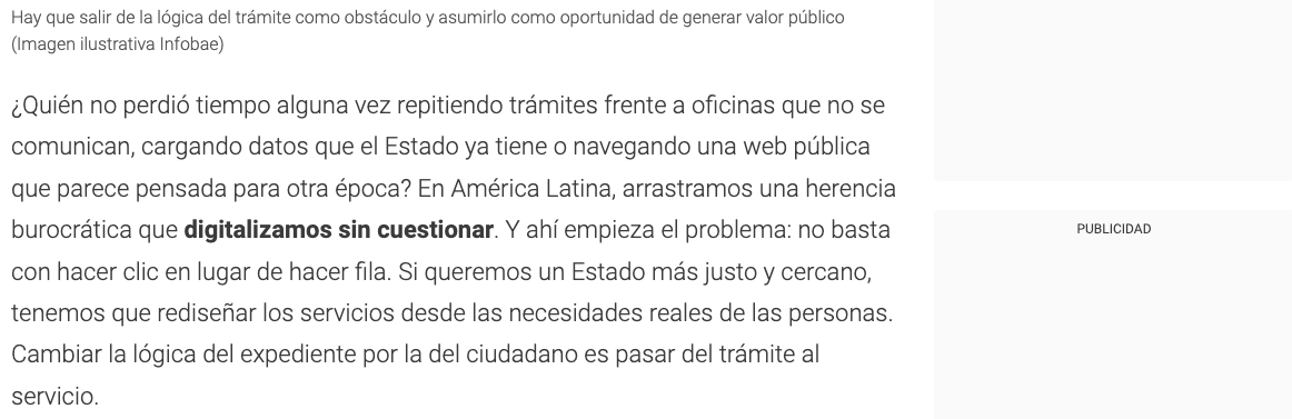 ¿Quién no perdió tiempo alguna vez repitiendo trámites frente a oficinas que no se comunican, cargando datos que el Estado ya tiene o navegando una web pública que parece pensada para otra época? En América Latina, arrastramos una herencia burocrática que digitalizamos sin cuestionar. Y ahí empieza el problema: no basta con hacer clic en lugar de hacer fila. Si queremos un Estado más justo y cercano, tenemos que rediseñar los servicios desde las necesidades reales de las personas. Cambiar la lógica del expediente por la del ciudadano es pasar del trámite al servicio.