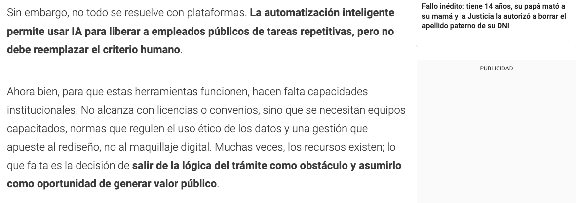 Ahora bien, para que estas herramientas funcionen, hacen falta capacidades institucionales. No alcanza con licencias o convenios, sino que se necesitan equipos capacitados, normas que regulen el uso ético de los datos y una gestión que apueste al rediseño, no al maquillaje digital. Muchas veces, los recursos existen; lo que falta es la decisión de salir de la lógica del trámite como obstáculo y asumirlo como oportunidad de generar valor público.