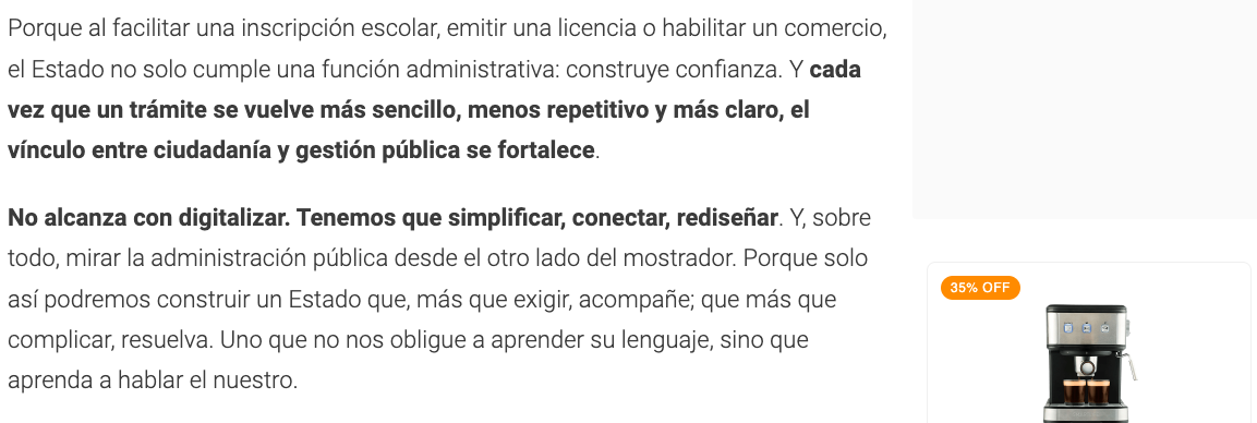 No alcanza con digitalizar. Tenemos que simplificar, conectar, rediseñar. Y, sobre todo, mirar la administración pública desde el otro lado del mostrador. Porque solo así podremos construir un Estado que, más que exigir, acompañe; que más que complicar, resuelva. Uno que no nos obligue a aprender su lenguaje, sino que aprenda a hablar el nuestro.