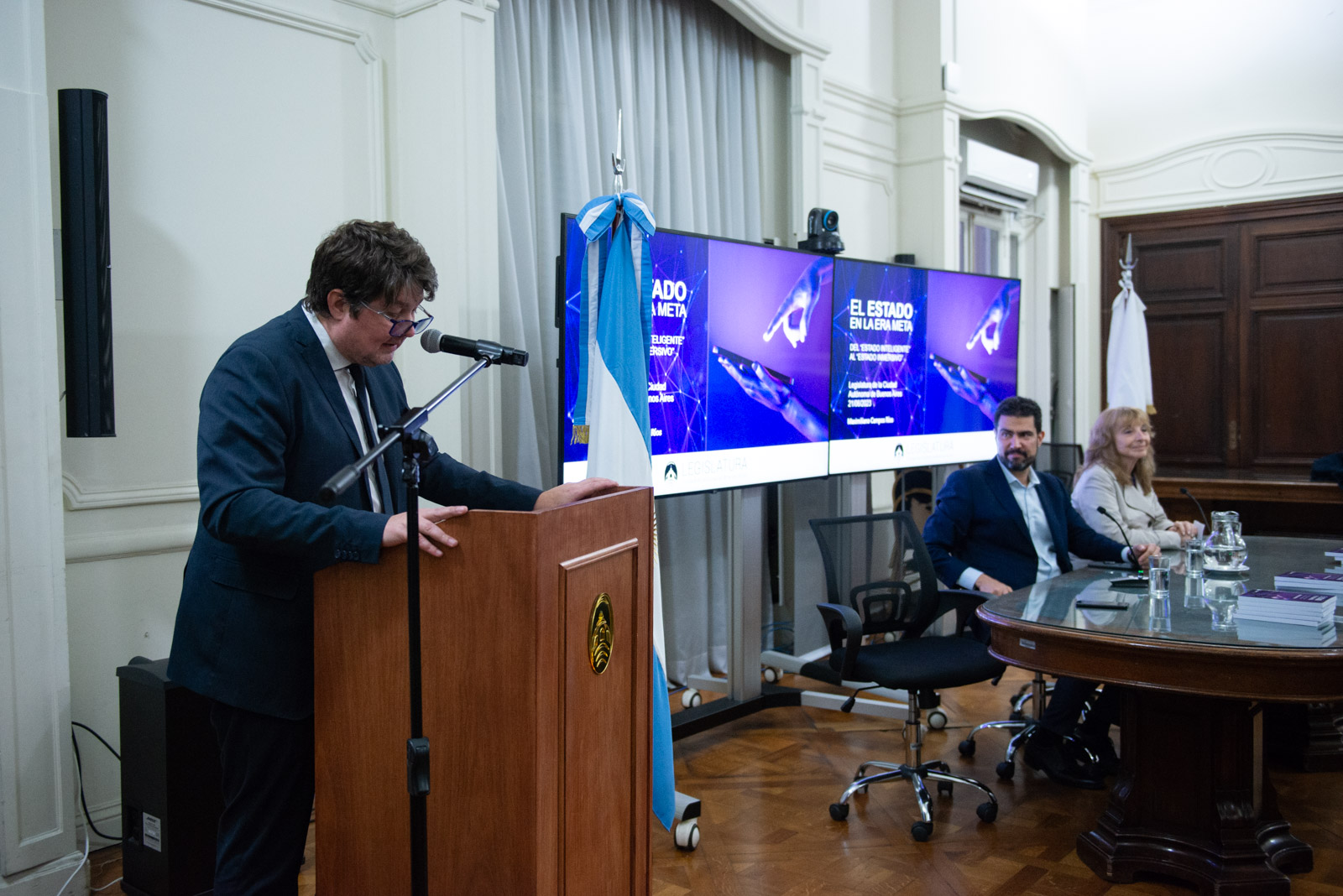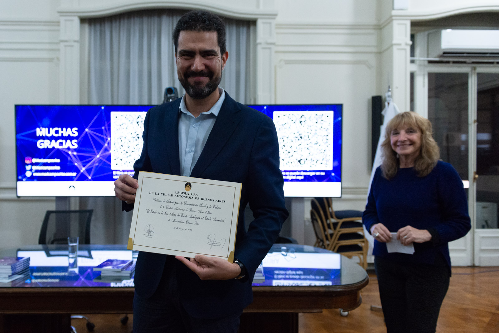 La Legislatura de la Ciudad Autónoma de Buenos Aires, a través del Diputado de UCR Evolución, Marcelo Guouman, entregó anoche en el Salón Presidente Alfonsín la declaración de interés para la comunicación social y la cultura de la Ciudad el libro del politólogo, consultor y docente, Lic. Maximiliano Campos Ríos “El Estado en la Era Meta, del Estado inteligente al Estado inmersivo”.