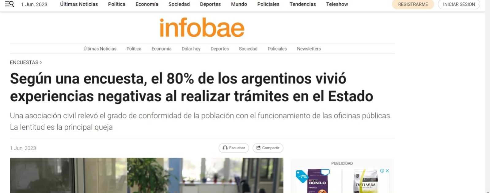 Nota publicada en Infobae. Junio 2023